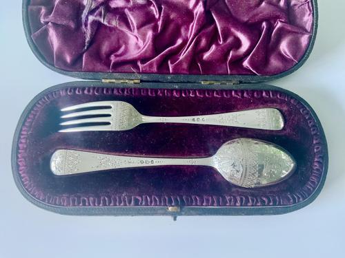 Boxed Victorian Silver Christening Set