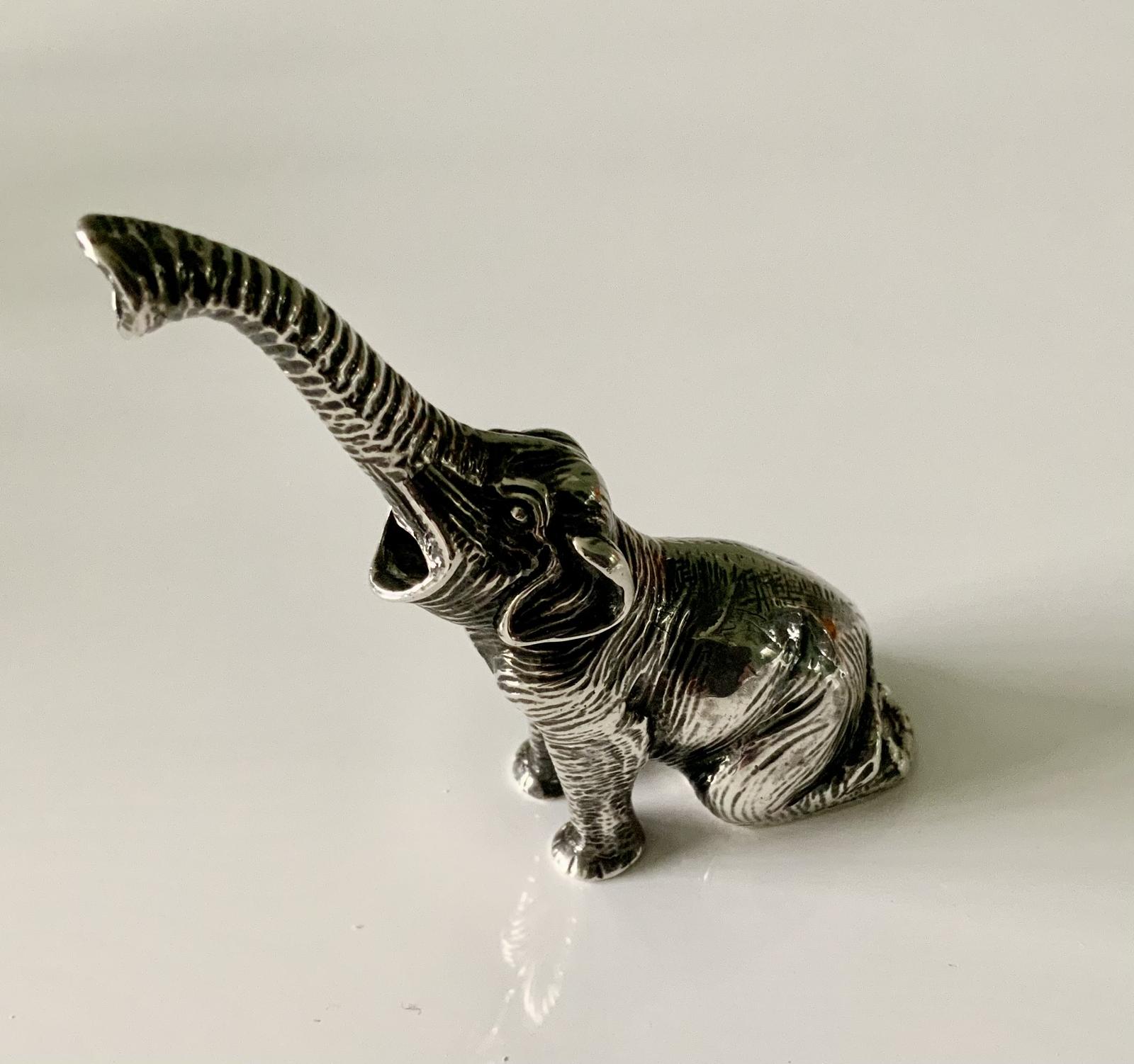 This may be a small solid silver elephant but it is absolutely wonderful. Made by Goldsmiths & Silversmiths Co., I have no idea what its use is, if it even has a use? The mouth and trunk are hollow - toothpicks?