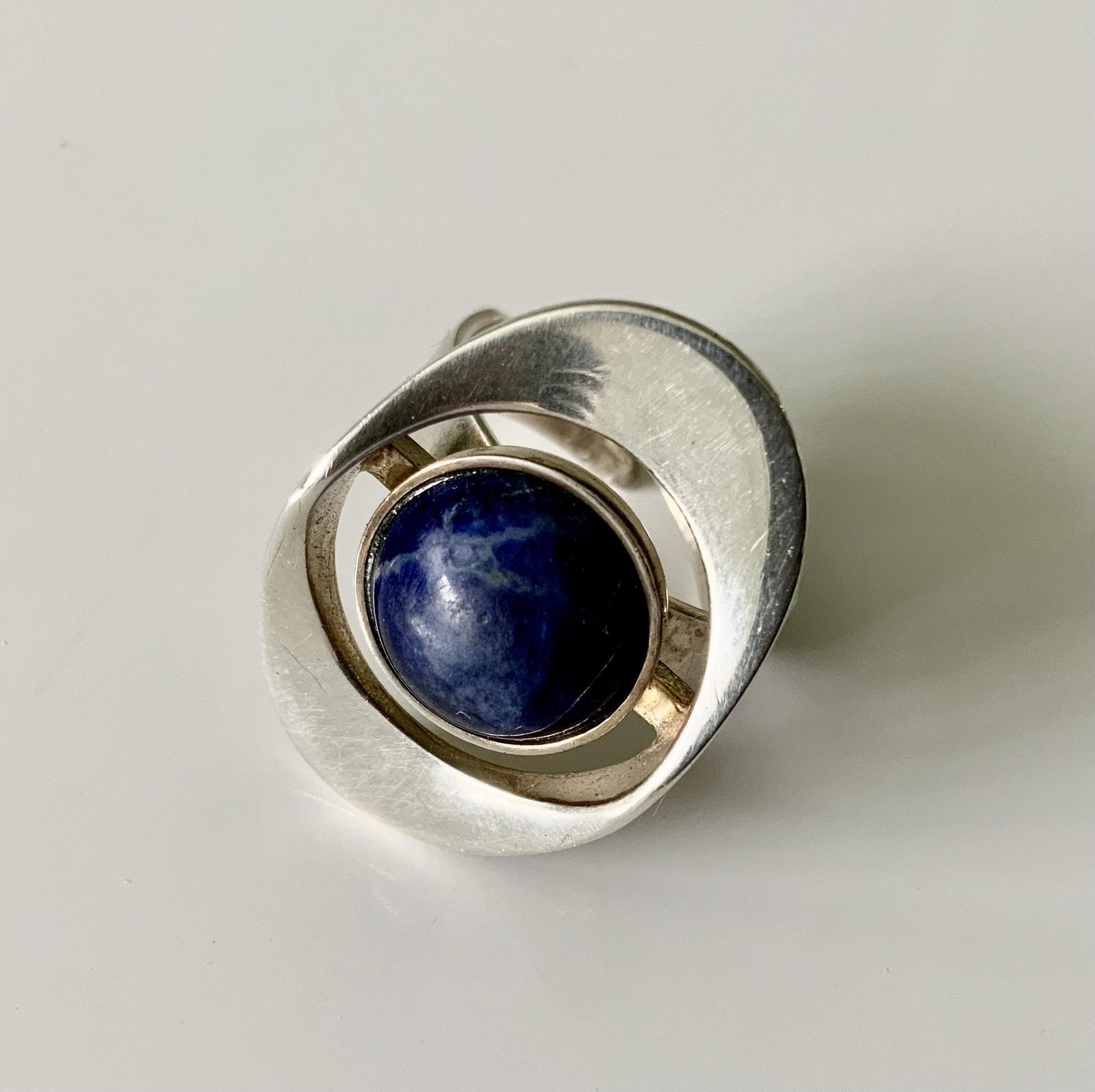 Offered for sale is this mid century David Andersen silver ring with unpolished blue stone. Split shank so size is adjustable, marked David-Anderson, Norway Sterling 925s.