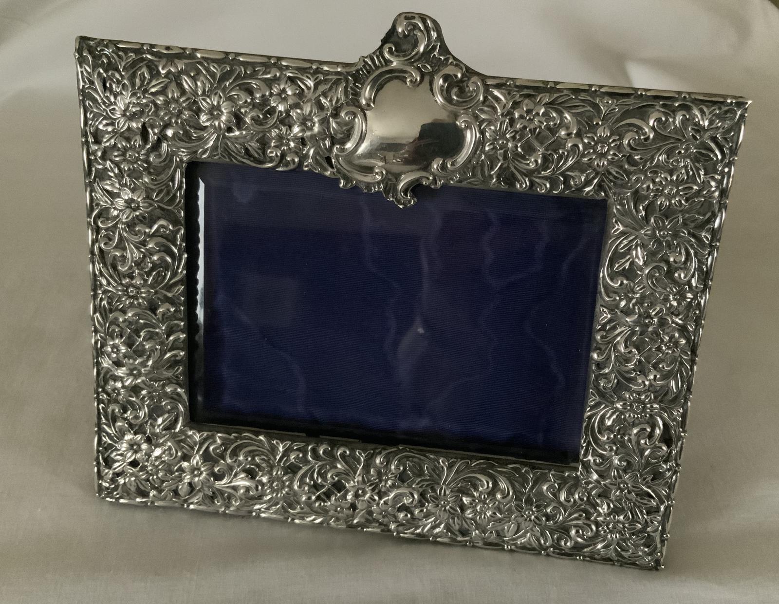 Normally this type of frame which is heavily decorated has been polished so that some of the silver has worn into holes. Not this one. It has been polished but the decoration is very crisp.