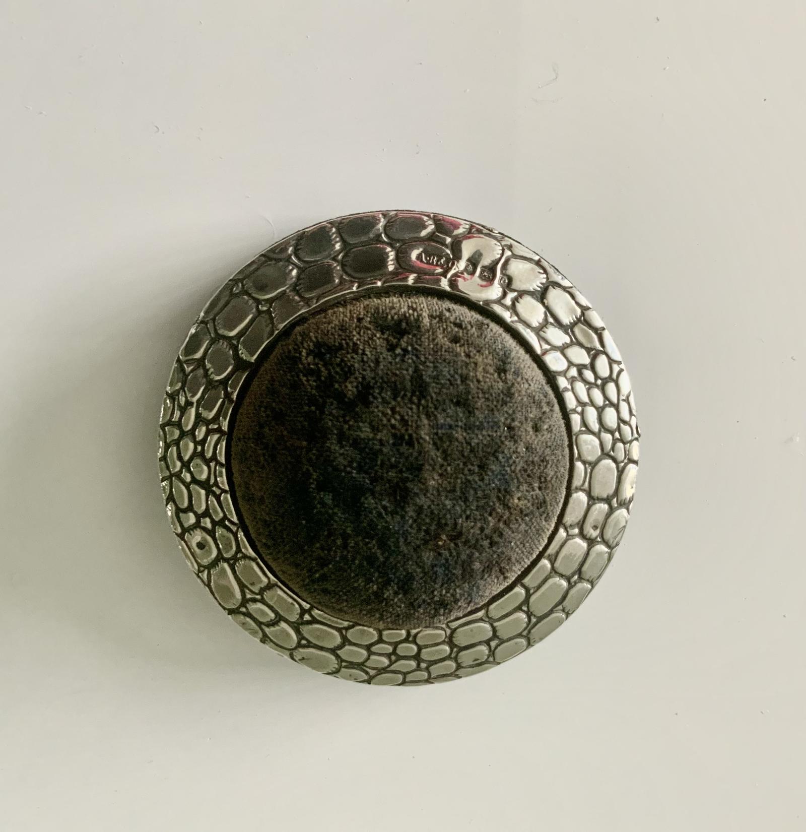A good quality Edwardian silver pin cushion. It retains is original velvet pad and base. Marked for Birmingham 1904 most likely by Bromet & Co.