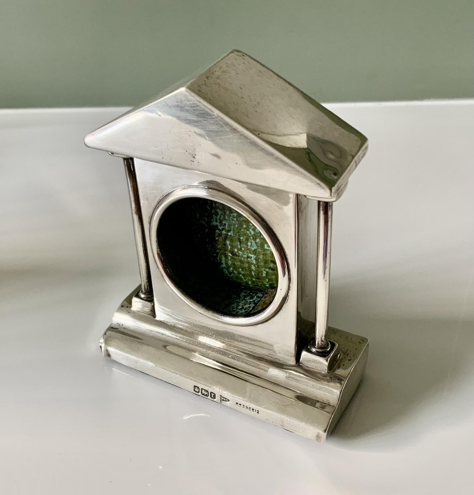Unusual silver watch stand/holder by Walker & Hall Sheffield 1909 registration number 396812. The silver is in good order commensurate with age and use, please see photographs.