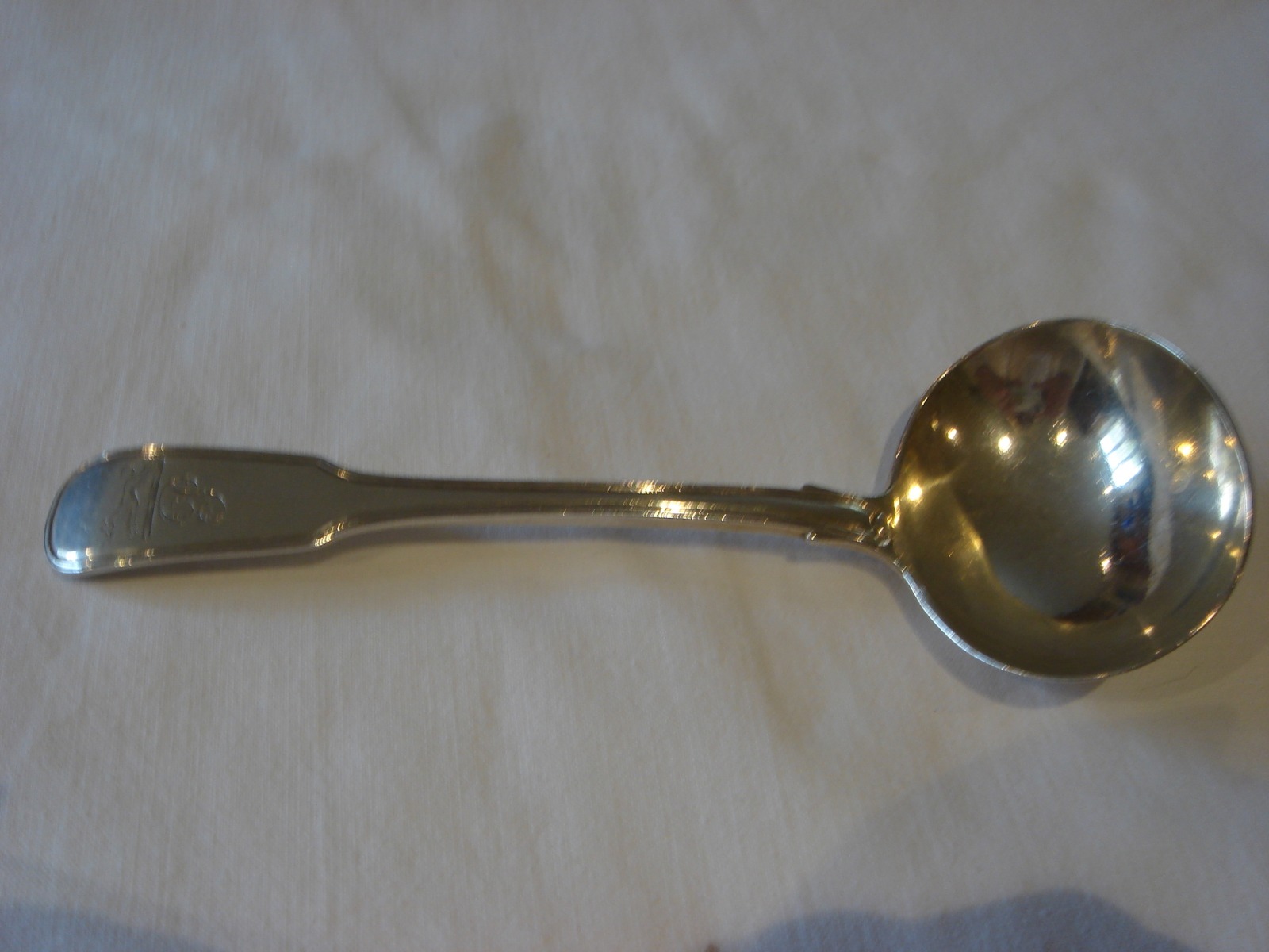 This is a super example of a double struck fiddle and thread silver ladle marked for Exeter by Bristol maker William Woodman.