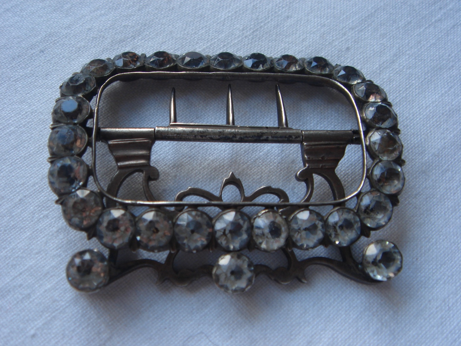 Pastes are set into silver, no markings, which is not unusual and all the buckle mechanism present and in working order.