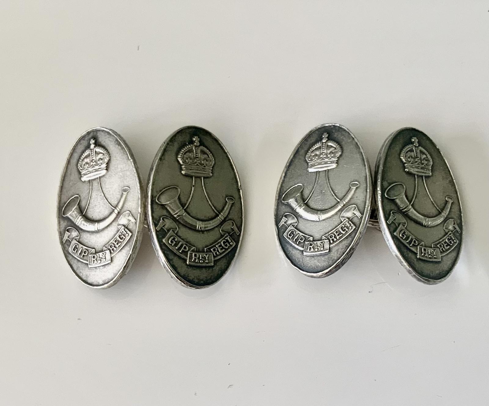 A pair of Great Indian Railway Regiment silver cufflinks - Light Infantry.
