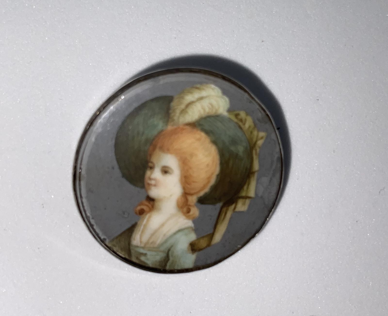 A French portrait miniature mounted in a silver frame with a brooch fitting on the reverse.