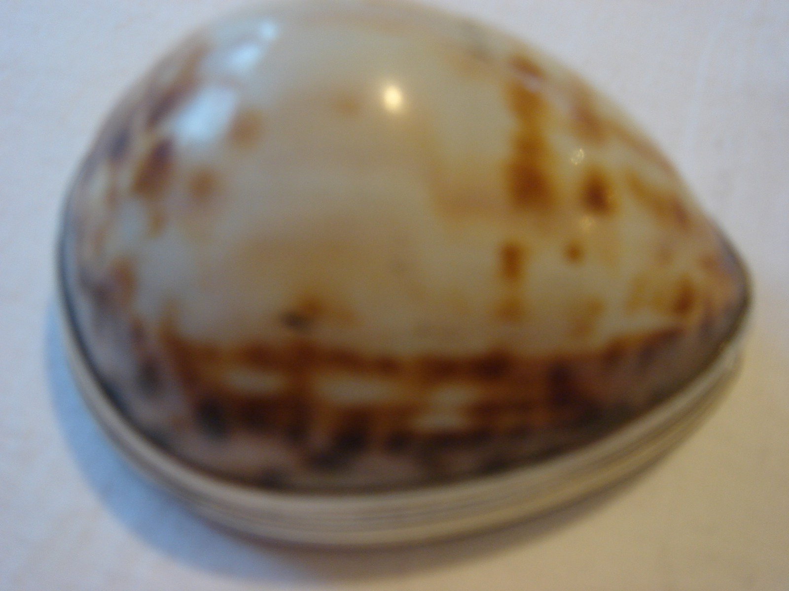 A great example of a cowrie snuff. Shell is in excellent condition, opens and shuts well, wonderful hinge in the silver.