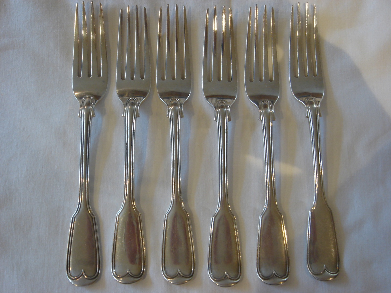 5 of the forks bear the makers mark for George Adams (Chawner & Co) and one bears the makers mark for Mary Chawner.