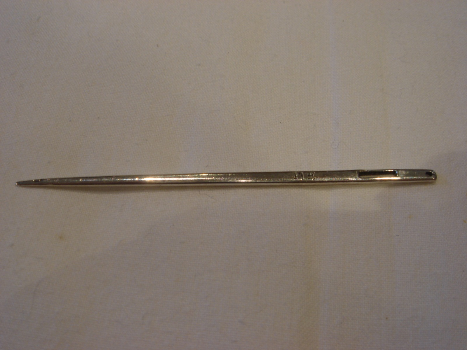 One side of the bodkin carries the owners initials ME and the other has the makers mark G over W.